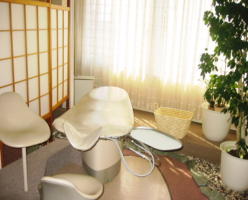 | 受付のそばにパウダールームを設置してあります。待合室や外からは中が見えにくくなっております。診察前の口紅落とし、診察後のお化粧直しに、どうぞゆっくりとお使い下さい。 | 主に最初の導入となる部屋で、お話を伺い、必要ならレントゲン写真の検査を行うための場所です。 |